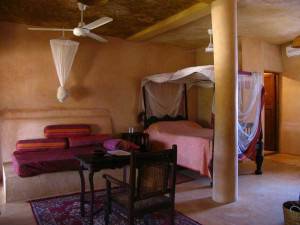 Il palazzo che ospita l’hotel è stato costruito all’inizio dell’800 e, da allora, vi risiede la stessa famiglia. Vi sono ventiquattro camere, ognuna delle quali è arredata con pezzi originali dell’epoca coloniale, ritratti della famiglia e splendidi letti intarsiati. L’hotel, inoltre, ospita una galleria di arte contemporanea indiana dove si organizzano eventi culturali. Le tariffe per notte partono dai 40 euro con colazione; è possibile richiedere il servizio di mezza pensione presso il ristorante sulla terrazza.