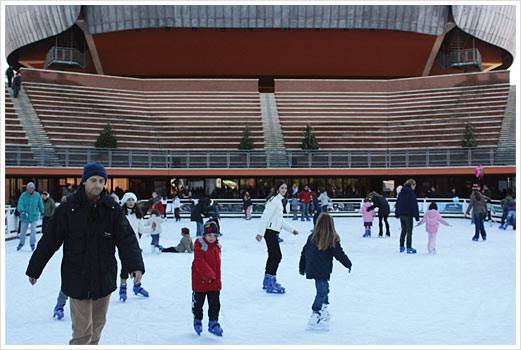 Anche quest’anno Itos Eventi ha allestito all’ingresso del complesso la grande pista di pattinaggio che lo scorso anno aveva attratto ben 30000 persone, pronte a scivolare o ruzzolare sul ghiaccio materializzato per l’occasione a pochi metri dal Tevere. Chi non fosse abile nell’arte del pattinaggio potrà sfruttare l’occasione per imparare qualche “passo d’occasione” grazie ai minicorsi gratuiti che si terranno dal 16 al 18 dicembre.