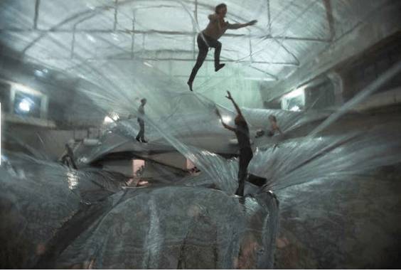 Saltare su un bolla gigante? Si può a Milano \Roma – Tre livelli di pellicole trasparenti con getti di aria nella parte inferiore, posizionati nello spazio espositivo dell’Hangar Bicocca di Milano: l’ultimissima creazione di Thomas Saraceno.