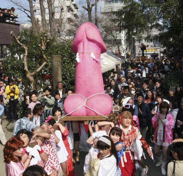 Peni giganti in processione per la Chiwawa Matsuri \ Roma – Grande, rosa e decisamente equivoco: così apare”l’idolo” che nella città di Kawasaki viene portato in processione la prima domenica di aprile per celebrare la fertilità e invocare la protezione dalle malattie sessualmente trasmissibili.