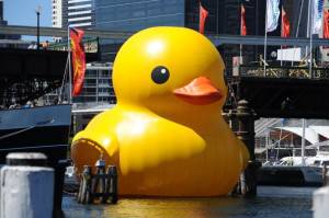 Paperella gigante nel porto in Australia/Roma – Si tratta di una vera e propria opera d’arte alta 15 metri e costruita interamente in gomma! Parliamo della paperella gialla che ha attraversato il porto di Sydeny per celebrare e pubblicizzare il festival delle arti che si conclude oggi dopo 18 giorni!