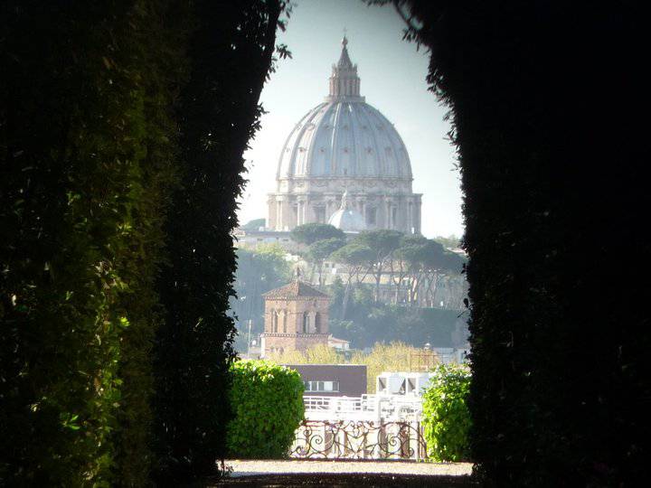 Il tutto si può ammirare dal buco della serratura di una porta in Piazza dei Cavalieri di Malta dove, quasi tutti i palazzi circostanti, appartenevano originariamente ad un monastero benedettino. Nei secoli successivi divenne di proprietà dei Templari e, infine, il monastero diventò di proprietà del Sovrano Militare Ordine di Malta.