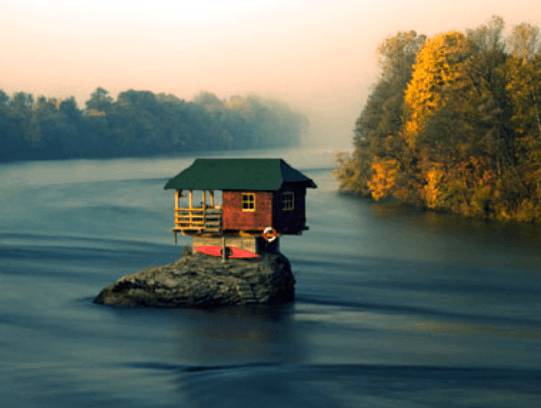 La casa nel fiume Drina \Roma – Volete vivere in un posto tranquillo, senza vicini di casa che disturbano o strade super affollate in cui non si trova mai parcheggio? Se la risposta è si allora fate come ha fatto Milija Mandic che ha costruito una casa al centro di un fiume. La foto che vedete infatti non è un fotomontaggio bensì la piccola dimora costruita nel lontano 1968 da Mandic che, con l’aiuto di alcuni amici, ha eretto la sua casa nel mezzo del fiume Drina, in Serbia. La costruzione è veramente unica nel suo genere e sicuramente risolve tutti i problemi legati al vivere in un appartamento nel centro città ma allo stesso tempo bisogna anche fare i conti con il fatto che si trova nel cuore di un impetuoso fiume, tanto che Mandic è stato costretto a ristrutturarla ben sei volte a causa delle tempeste e delle inondazioni che nel corso degli anni l’hanno più volte distrutta.