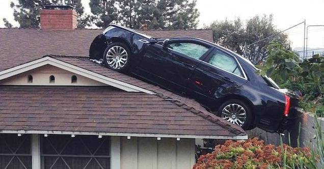 Una tragedia sfiorata si trasforma in un divertente parcheggio/Roma – Non troveteate parcheggio? Tranquilli, potete sempre sistemare la vostra auto sul tetto del vostro vicino di casa! E’ quello che è successo a Glendale, in California, anche se, l’autista della vettura, non avrebbe proprio scelto volutamente questo tipo di parcheggio! Sabato pomeriggio, un automobilista, stava percorrendo una strada collinare quando, per un guasto alla vettura, avrebbe perso il controllo dell’auto e sarebbe “precipitato” fuori strada. Fortuna ha voluto che, sotto la strada, ci fosse questa abitazione e che, l’auto, si sia comodamente parcheggiata sul tetto!