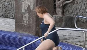 La Merke alle terme di Ischia \Roma – Nonostante nell’ultimo anno la Cancelliera tedesca Angela Merkel abbia più volte “sgridato” l’Italia, dandogli anche punizioni dure, ha deciso comunque di scegliere il nostro Bel Paese per trascorrere le vacanze pasquali. La scorsa settimana infatti la Merkel, in compagnia del marito e senza guardie del corpo, è stata fotografata durante un soggiorno di relax nella bellissima Ischia, mentre si godeva il meritato riposo dagli impegni istituzionali tra una bagno alle terme ed una passeggiate tra le viuzze dell’isola. L’occhio dei paparazzi non ha potuto evitare di immortalarla in costume da bagno, rigorosamente intero e nero, mentre si accingeva a sfidare, da buona tedesca, le temperature non proprio primaverili presenti in questi giorni in Italia. Che dopo questo soggiorno abbia imparato ad amare un po’ di più l’Italia?