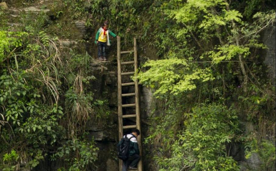 CINA SCALATA PER ANDARE A SCUOLA / ROMA – Questo è uno di quei casi in cui la motivazione viene messa a dura prova. Ed evidentemente questi bambini cinesi sono molto motivati o forse semplicemente abituati. Fatto sta che ogni giorno gli scolari, a partire dai 5 anni d’età, di questo paese sperduto fra le montagne Badagong della Cina si arrampicano su una scala appoggiata sulle rocce per andare a scuola.