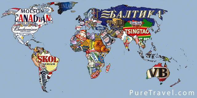Il mondo secondo le birre più famose: ecco la mappa \ Roma – World Beer Map, così Pure Travel ha denominato il suo speciale planisfero, una visione del mondo a tema birra che ci fa sorridere e riflettere al tempo stesso.