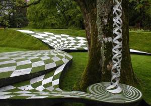 GIARDINO SCOZIA FISICA / ROMA – A vederlo in fotografia sembra il set del film Alice in Wonderland di Tim Burton. Invece, con grande sorpresa di tutti, si tratta di un giardino reale costruito dall’architetto Charles Jenks e sua moglie Maggie.