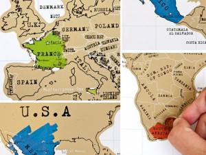 Se volete invece qualcosa di originale per ricordare le vostre vacanze dovete munirvi di “Scratch Map”. Avete presente i “Gratta e Vinci”? Questa cartina geografica funziona secondo lo stesso principio! Grattate via con una monetina la nazione che avete visitato che cambierà colore e spiccando rispetto a tutte le altre con maggiori dettagli e indicazioni.