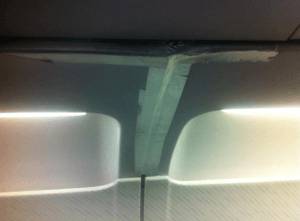 Nastro adesivo all’interno del Milano-Bari di Alitalia \Roma – Quando si spendono più di 200 euro a testa per un biglietto aereo si da per scontato che il viaggio sarà quanto meno comodo e soprattutto sicuro. Ma non sempre è così. La foto che vedete sopra, e che nel giro di poche ore ha fatto il giro della rete suscitando molte polemiche, è stata scattata da alcuni passeggeri che si trovavano sul volo Milano-Bari gestito dalla compagnia Alitalia. L’immagine mostra eloquentemente come gli interni del veicolo, decollato ieri sera dallo scalo di Milano Linate, siano stati rattoppati con del semplice nastro adesivo che in più punti si era anche staccato. La presenza dello scotch sulle pareti interne dell’aereo ha ovviamente scatenato l’ira dei passeggeri che hanno accusato la compagnia di usare mezzi vecchi e rovinati per gestire le tratte con gli scali del Sud Italia venendo meno sulle norme sulla sicurezza e sulla comodità.