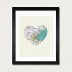 Scegliete una cornice e ritagliate il cartoncino a misura. Prendete la carta del vostro luogo preferito e iniziate a progettare il cuore. Mettiamo caso che il posto prescelto sia Roma, ebbene disegnate un cuore che abbia come centro proprio Roma! A questo punto vi basterà incollare il cuore al centro del cartoncino e mettere il tutto nella cornice.