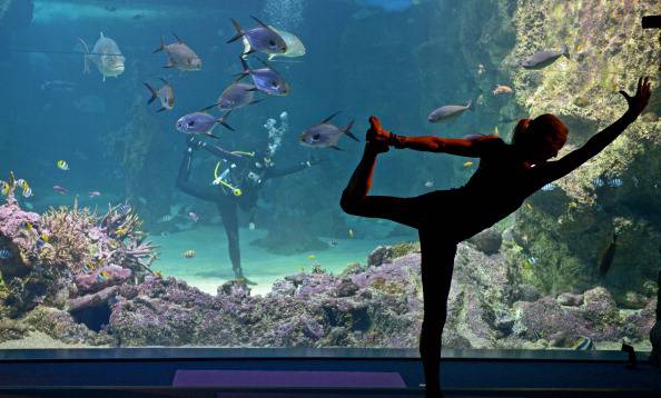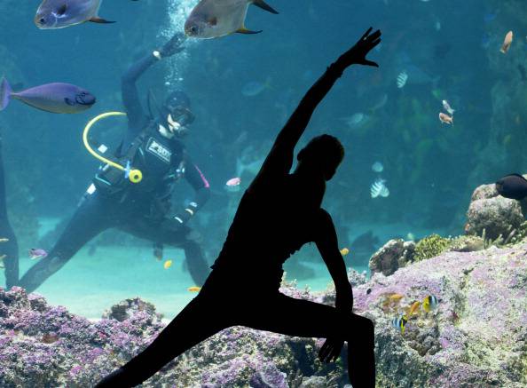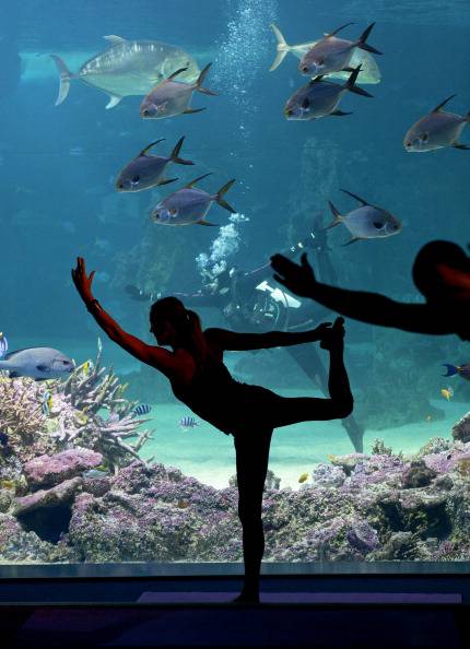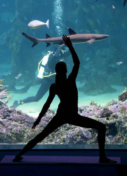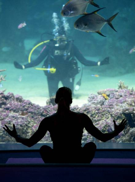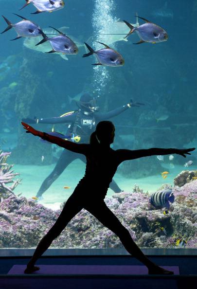 E’ lei infatti la protagonista delle foto qua sotto, immagini che la ritraggono con muta, pinne e boccaglio mentre si esercita nell’attività che lei stessa ha contribuito a promuovere: lo yoga sott’acqua. Sasha Hawley è infatti la fondatrice di “Yoga by the sea”, associazione che propone l’unione tra l’antica disciplina orientale e la quiete maestosa del mondo marino. “E’ incredibile avere l’opportunità di stare così vicino ad una varietà di vita marina maestosa e rasserenante” ha spiegato la stessa Sasha che, da dentro una delle grandi vasche del Sea life aquarium di Sydney, ha seguito scrupolosamente le mosse dell’istruttrice Vivien Speers. Intorno a quest’ultima un piccolo drappello di amanti dello yoga ha preso parte alla prima classe di questo nuovo progetto, un’appuntamento che non sarà certo isolato: ogni mercoledì alle 7 di mattina, pagando un contributo di 30 dollari, si potrà infatti partecipare alla lezione con tanto di colazione per avere uno sprint in più.