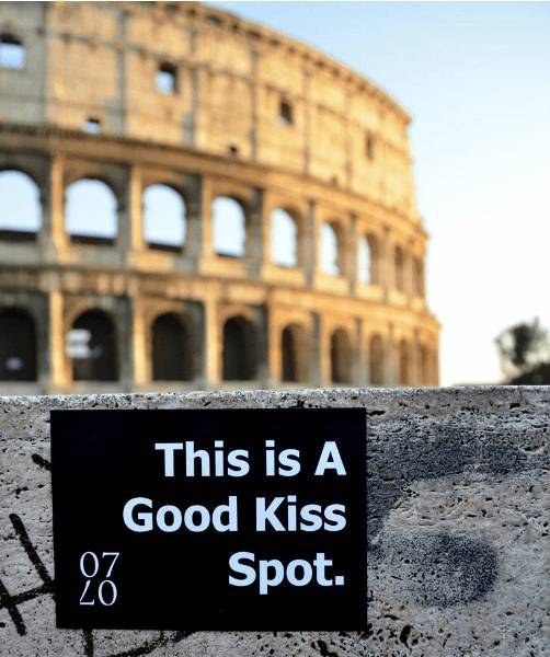 Un adesivo nato per portare l’amore nel mondo spopola in tutto il Globo \ Roma – “Questo è un buon punto per baciarsi”. Ecco cosa recitano gli adesivi più popolari del momento: semplici stickers a sfondo nero le cui candide parole sono volte a portare un pizzico di romanticismo negli angoli delle moderne e fragorose città.
