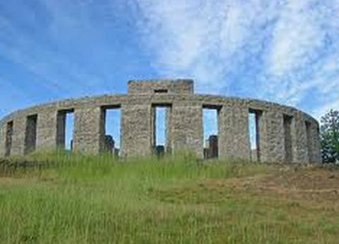 3) Maryhill (Washington) – “Sam Hill’s Stonehenge” – Non si sa cosa abbia pensato il magnate delle ferrovie Sam Hill quando ebbe questa brillante idea. Perché non riprodurre i monoliti di Stonehenge però “correggendo” la scultura originale e riordinando le varie pietre in modo un po’ più simmetrico e ordinato?