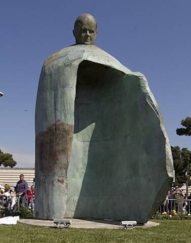 2) Roma – “Il memoriale di Papa Giovanni Paolo II” – Un Papa così amato non solo da noi italiani, ma anche dai cittadini di tutto il mondo non poteva essere ricordato in modo peggiore. Una statua simile a una colata di cemento buttata lì a caso e un volto che non ricorda neanche lontanamente quello di Karol Wojtyla.