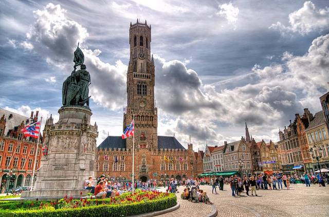 •  partire dalla piazza principale, il Markt, che è la piazza dello storico mercato, dominata dalla torre campanaria e dove si affacciano i più importanti edifici pubblici e non di Bruges. Proprio dalla torre campanaria chiamata il Berfort, che custodisce anche un carillon di 47 campane, è possibile godere di una fantastica vista sulla città a patto di sfidare i 366 gradini che servono per arrivare fino alla cima.