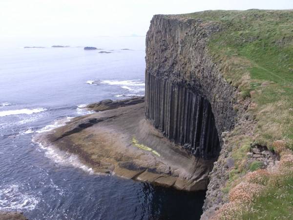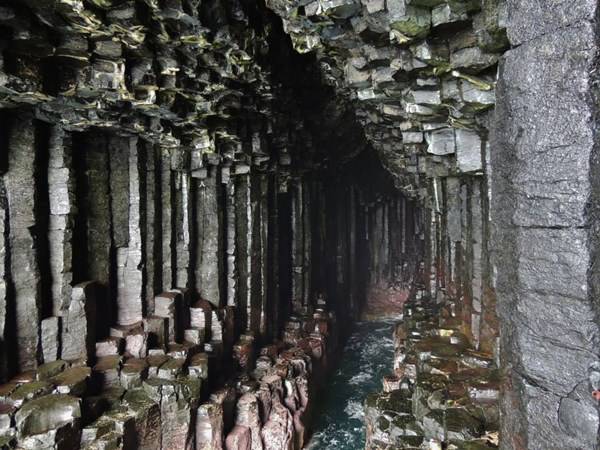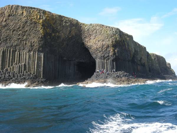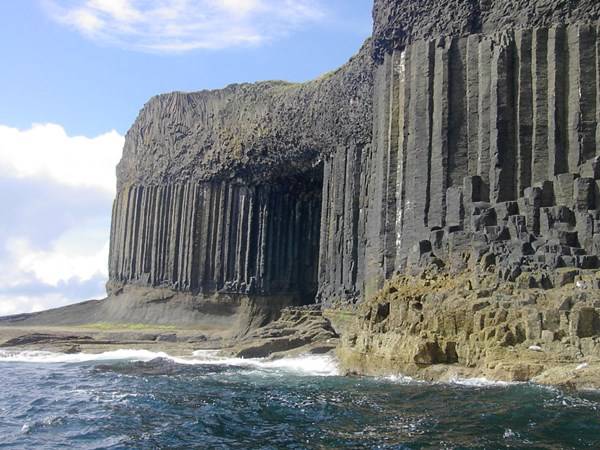 Scozia grotta meraviglia della natura- La Grotta di Fingal a prima vista potrebbe sembrare un’opera dell’uomo: le sue colonne perfettamente esagonali incastonate una di fianco a l’altra sembrano frutto del genio di un Leonardo o di un Bernini. Invece il basalto che le forma deriva da un’antica colata lavica poi solidificatasi in questa particolarissima forma. Le onde che risuonano all’interno creano degli echi talmente affascinanti che il suo antico nome gaelico è Uamh-Binn, cioè “Grotta della Melodia”.
