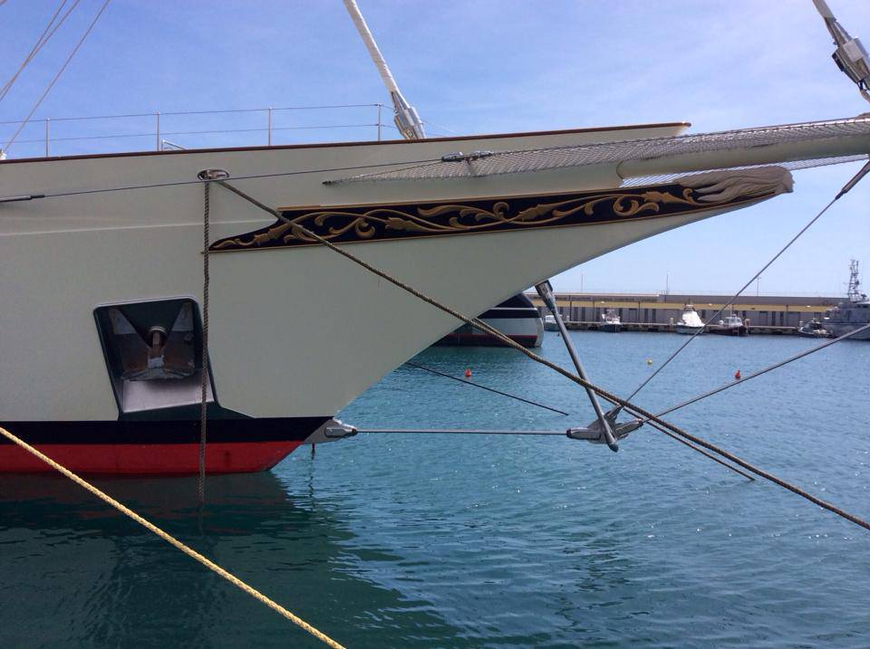 Lo scafo è realizzato invece in lega d’alluminio con carbonio ed altri compositi. I tre alberi, alti circa 60 metri, sono in grado di reggere 2500 metri quadrati di vele che permettono di navigare a 18 nodi, ma per sicurezza a bordo ci sono anche due potenti motori da 2400 cavalli ciascuno.