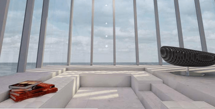 Se vi state però chiedendo come potervi accedere il mistero è presto risolto. La casa sporgente è accessibile attraverso il piano superiore da cui un ascensore vi porterà ai 4 sottostanti.