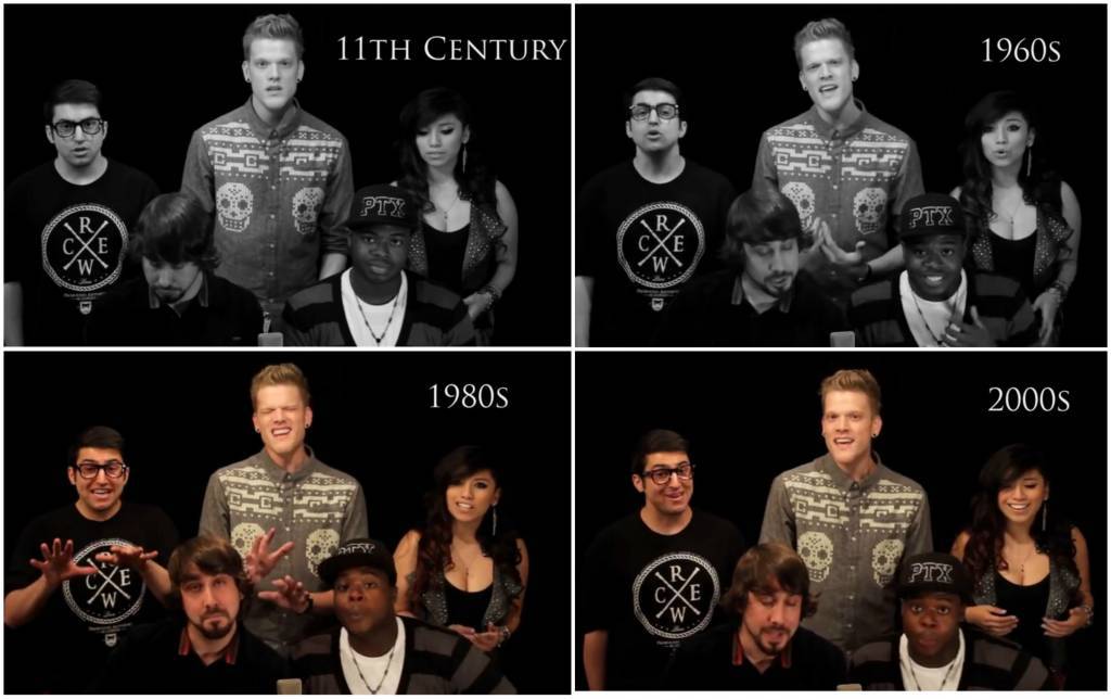 Dai canti gregoriani, al Trio Lescano, passando per il charleston a Lady Gaga. Mille anni di storia della musica del mondo racchiusi in quattro minuti di video che ha letteralmente fatto impazire il popolo del web e tutto grazie a loro, i Pentatonix un gruppo a cappella ormai famoso in tutto il mondo.