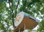 La casa, costruita a ben 17 metri dal suolo, tra due querce, poggia su quattro supporti in acciaio inclinati ed è dotata anche di due terrazzi con parapetti in legno e acciaio, il primo si trova a un’altezza di 3,8 metri mentre il secondo a 5,6. Superati gli stessi, salendo attraverso delle comode scale in legno si entra nella casa-uovo dove si rimane letteralmente a bocca aperta per la sua bellezza e per la sua comodità. La casa, infatti, è capace di accogliere più persone allo stesso tempo. Un vero angolo di paradiso dove poter vivere dei monenti a stretto contatto con la natura.