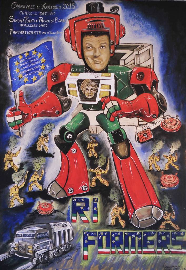 Non è mai troppo preseto per organizzare il proprio viaggio nel Carneval per eccellenza, quello di Viareggio che con le sue maschere e i suoi carri incanta grandi e piccini. Quest’anno le prime indiscrezioni sono molto “appetitose”: il premier Renzi nei panni di Pinocchio, di un mega robot, come illusionista e a cavalcioni della tartaruga delle riforme, la Merkel partoriente, Papa Francesco ai fornelli e in braccio a Putin, Berlusconi che tenta la scalata al Colle, l’Italia allo sbando.
