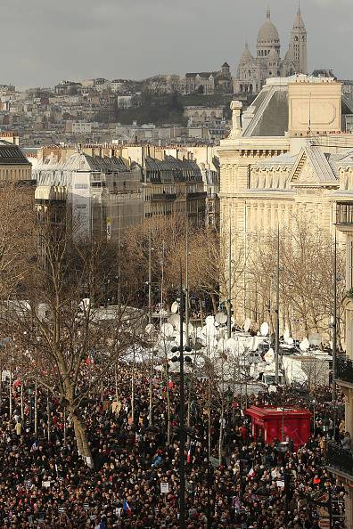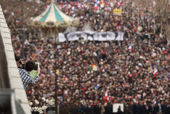 Tensione altissima per il corteo che partirà da Place della Republique ed arriverà a Place de la Nation. Enorme il dispiegamento di forze dell’ordine: cecchini sui tetti, agenti in borghese, strade limitrofe chiuse e controlli a tappeto. Oltre 3000 uomini fra gendermarie ed esercito a vegliare sulla sicurezza dei manifestanti e dei Capi di Stato.