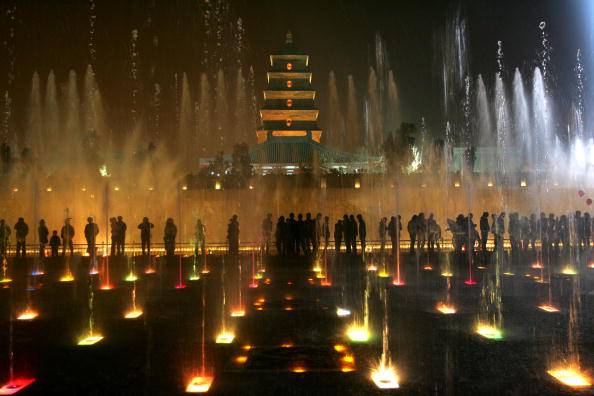 - Big Wild Goose Pagoda Fountain a Xian, in Cina: da oltre mille anni la Pagoda sullo sfondo è uno delle maggiori attrattive della città che ora sopraggiungono anche per assistere allo spettacolo di suoni e luci della fontana
