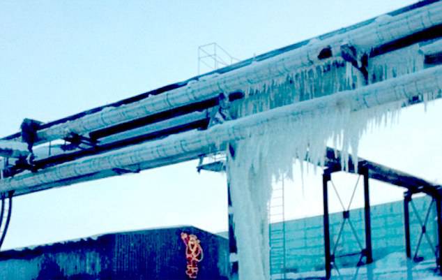 Il tempo non è clemente in quelle regioni e mentre imperversava una bella tormenta e la temperatura era già a -40° gradi, ecco che la rottura del sistema di riscaldamento centrale ha provocato la fuoriuscita di litri e litri d’acqua che hanno invaso le strade e le facciate dei palazzi imprigionando le auto in spessi blocchi di ghiaccio.