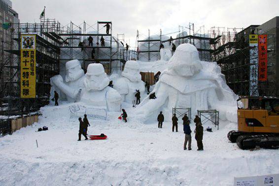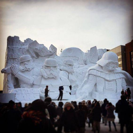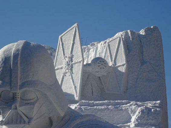 Quest’anno, nella settimana dal 2 all’11 febbraio, allo Snow Festival tra le altre sculture una ha avuto maggiore eco ed è quella che riguarda i protagonisti di Star Wars, il tutto per pubblicizzare la prossima puntata della saga. La scultura che ritrae il volto del malvagio Darth Vader che impugna una spada nella mano destra, affiancato da tre Stormtroopers, gli assalitori imperiali dell’Impero Galattico, è alta ben 15 metri e di notte si illumina lasciando tutti a bocca aperta per la ricchezza di dettagli.