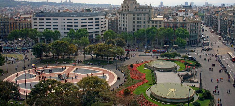 - Plaça de Catalunya, Barcellona, Spagna. Celeberrima piazza, da qui parte il viale della Rambla.