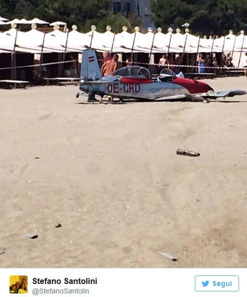 Si sono vissuti attimi di terrore al Lido di Venezia quando un velivolo leggero ha perso improvvisamente quota ed è atterrato in spiaggia, affollata di turisti. Il tutto è successo sulla spiaggia del Lido davanti all’Hotel Excelsior, l’aereo era guidato da una coppia di turisti austriaci decollati pochi istanti prima dall’aeroporto Nicelli del Lido Veneziano.