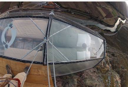 In Perù, in particolare a Calca, vicino a Cuzco si può dormire a ben 400 metri d’altezza: si tratta di 3 capsule che possono ospitare fino ad 8 persone. Sono tutte dotate di camera da letto, di bagno (separato da resto da un muro) e persino di un’aerea per mangiare. Sono alimentate da pannelli solari. Inoltre, ogni capsula ha delle tende per non farsi osservare dai condor che passano a quelle vette. I materiali delle “case” sono tutti di primissima qualità: policarbonato fuori e cotone morbido all’interno.