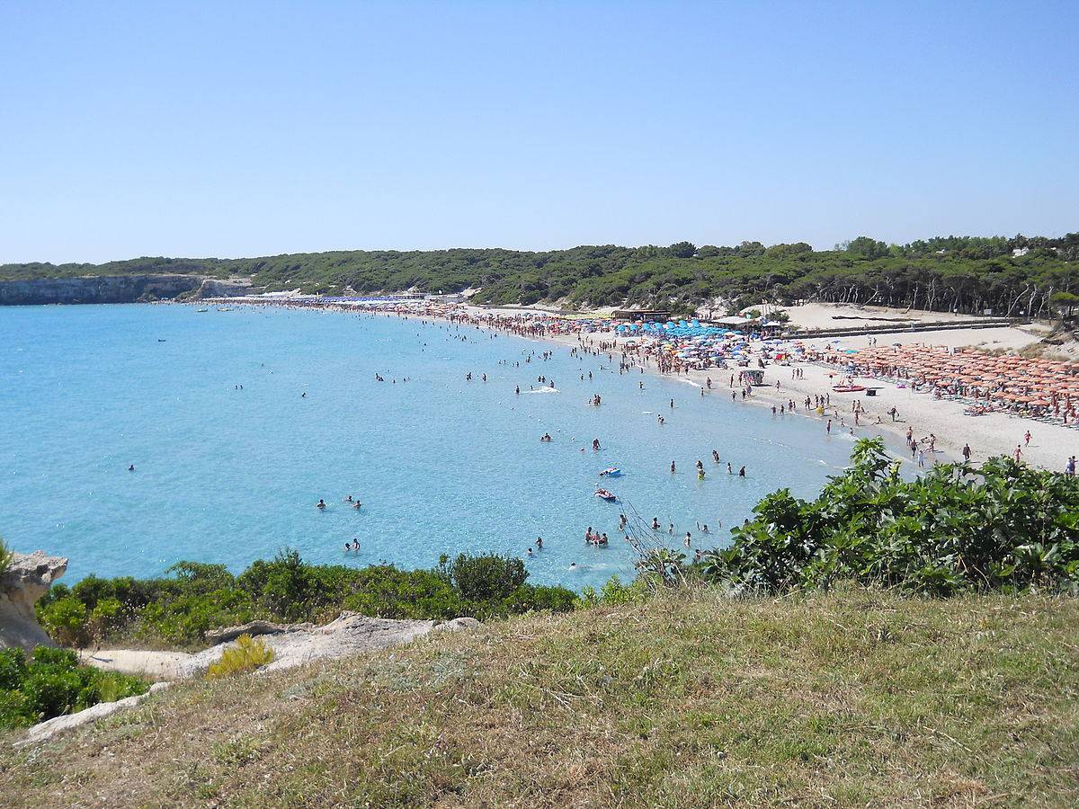 Finalmente in Puglia, nel bellissimo Salento. A Melendugno, sulla costa adriatica salentina troviamo la meravigliosa spiaggia di Torre dell’Orso. Situata in una baia e circondata dalla pineta, questa spiaggia offre un paesaggio spettacolare. Il fondale è molto basso dall’acqua turchese limpidissima. Il nome è dovuto alla torre del XVI secolo che si affaccia sulla spiaggia e che un tempo era utilizzata per avvistare le navi turche dirette verso il Salento. Secondo alcune ipotesi orso si riferirebbe alla foca monaca.
