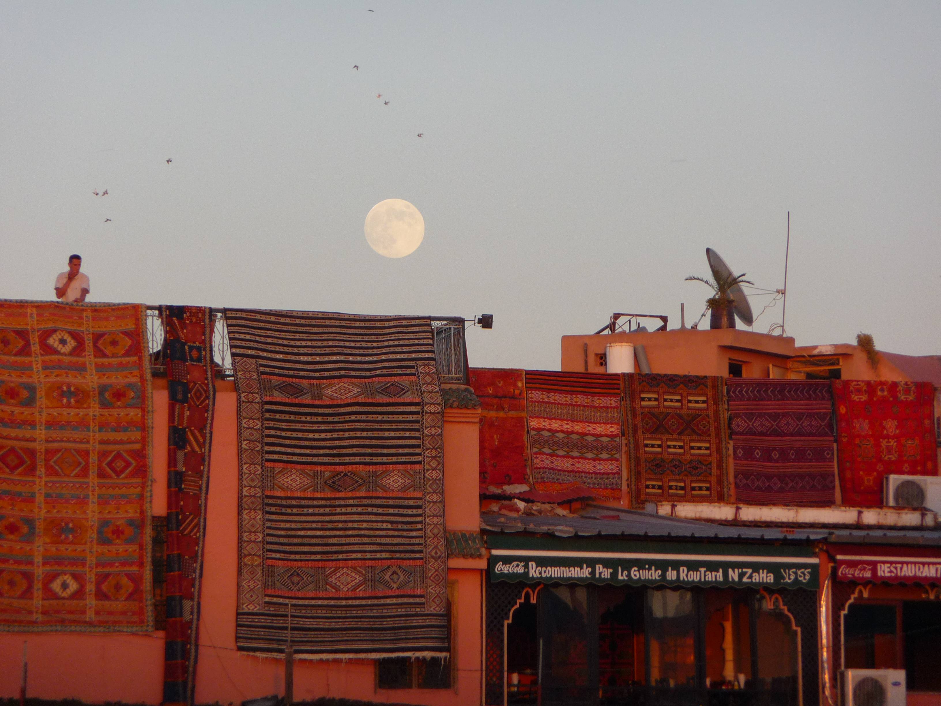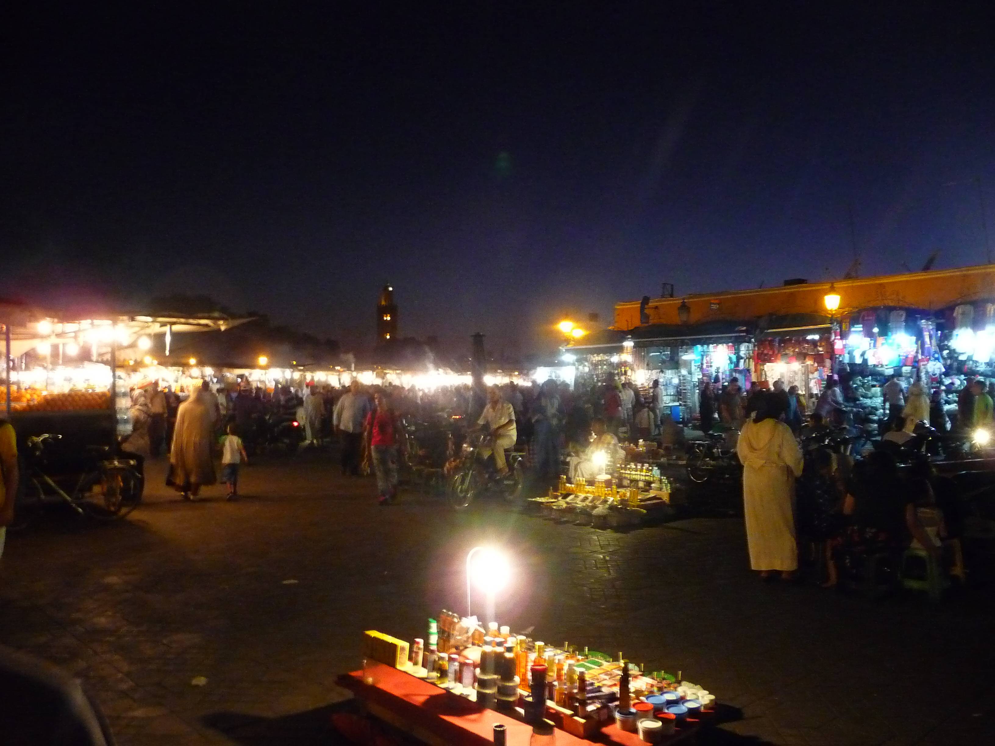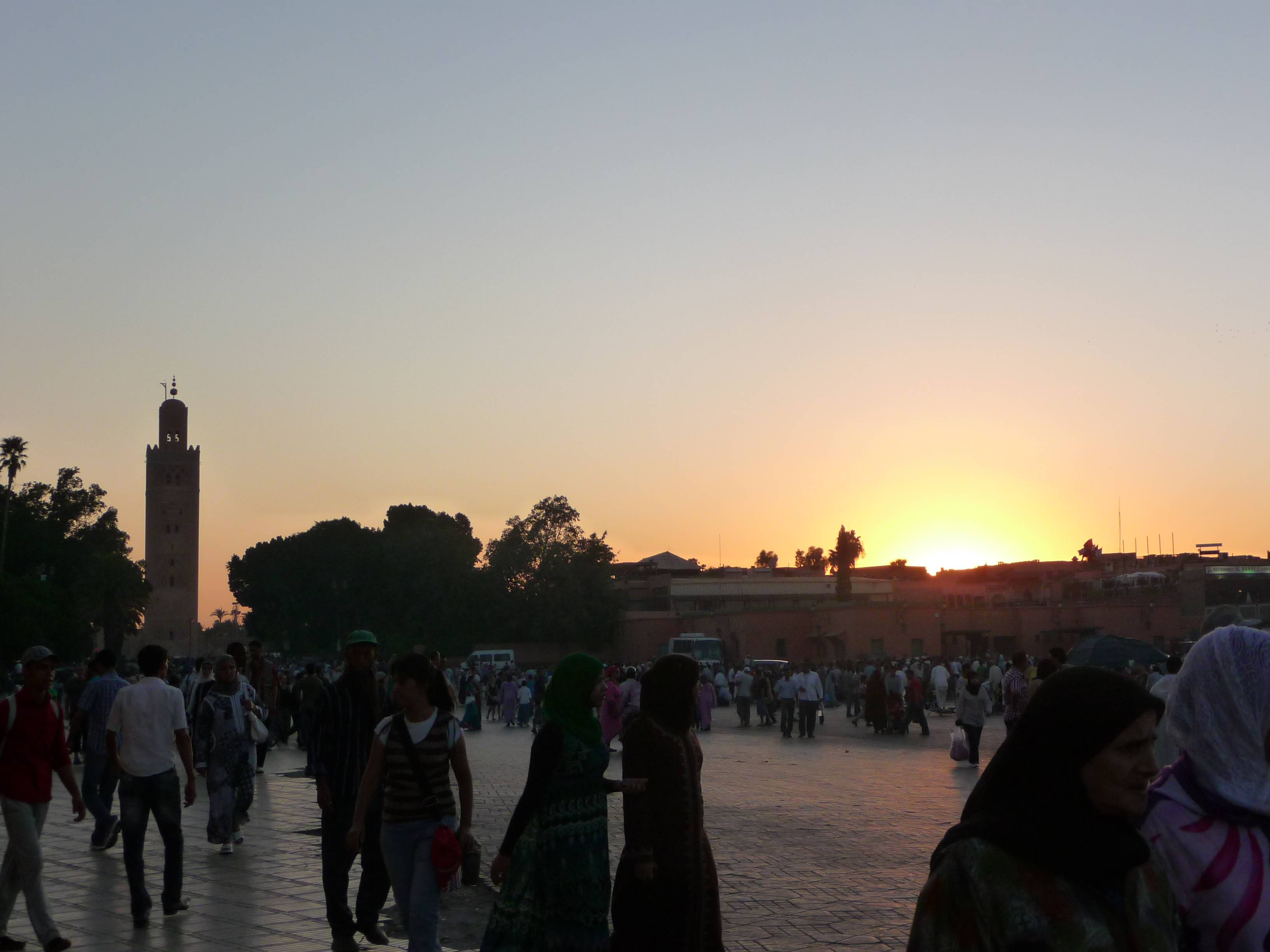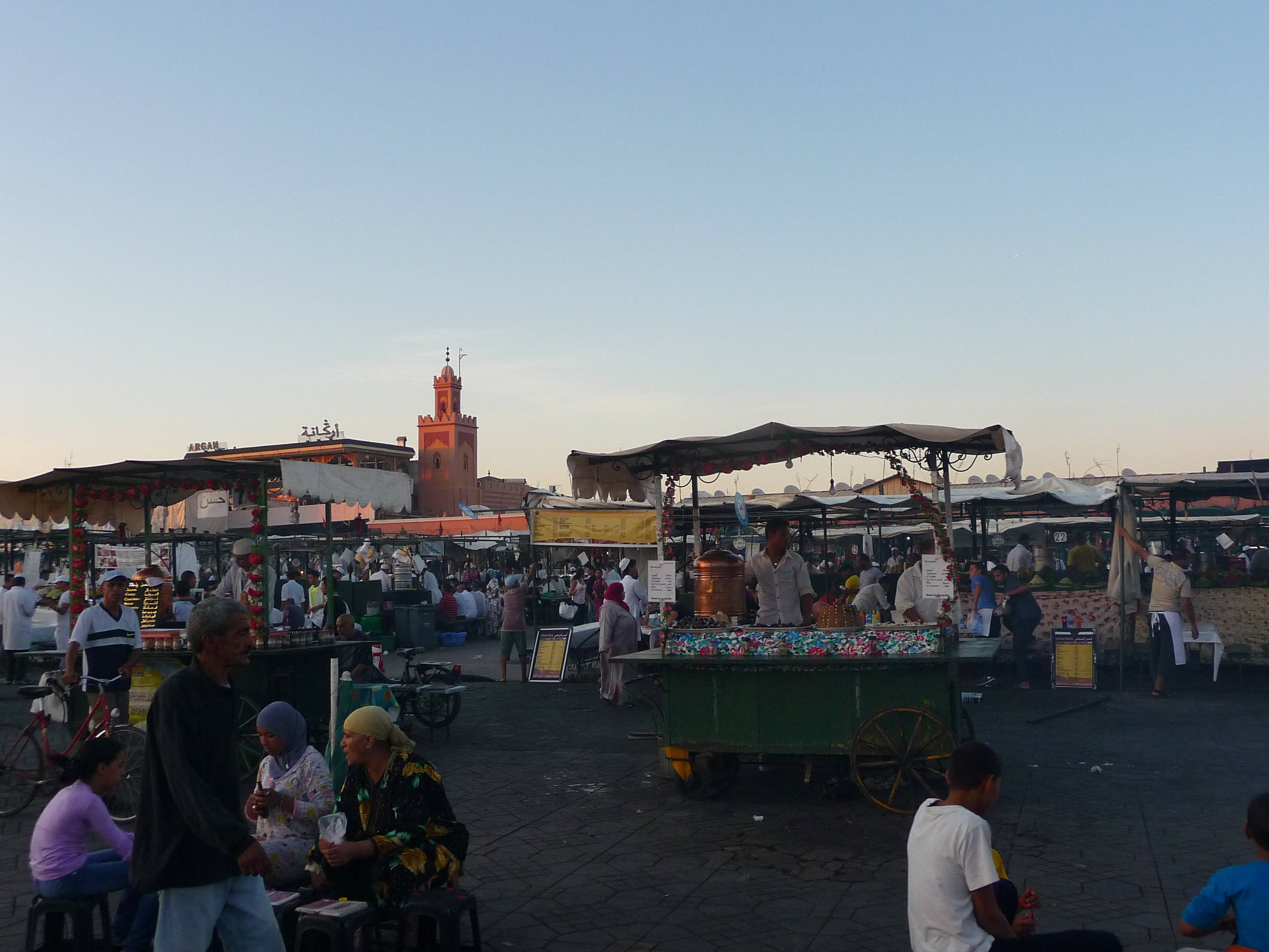 All’interno della Medina il cuore pulsante è la piazza Djemaa el-Fna. Questo è il centro vitale della città: sarete travolti dalla confusione, ma salendo su una delel terrazze dei caffè che vi si affacciano avrete un panorama molto suggestivo sulla vita marocchina.