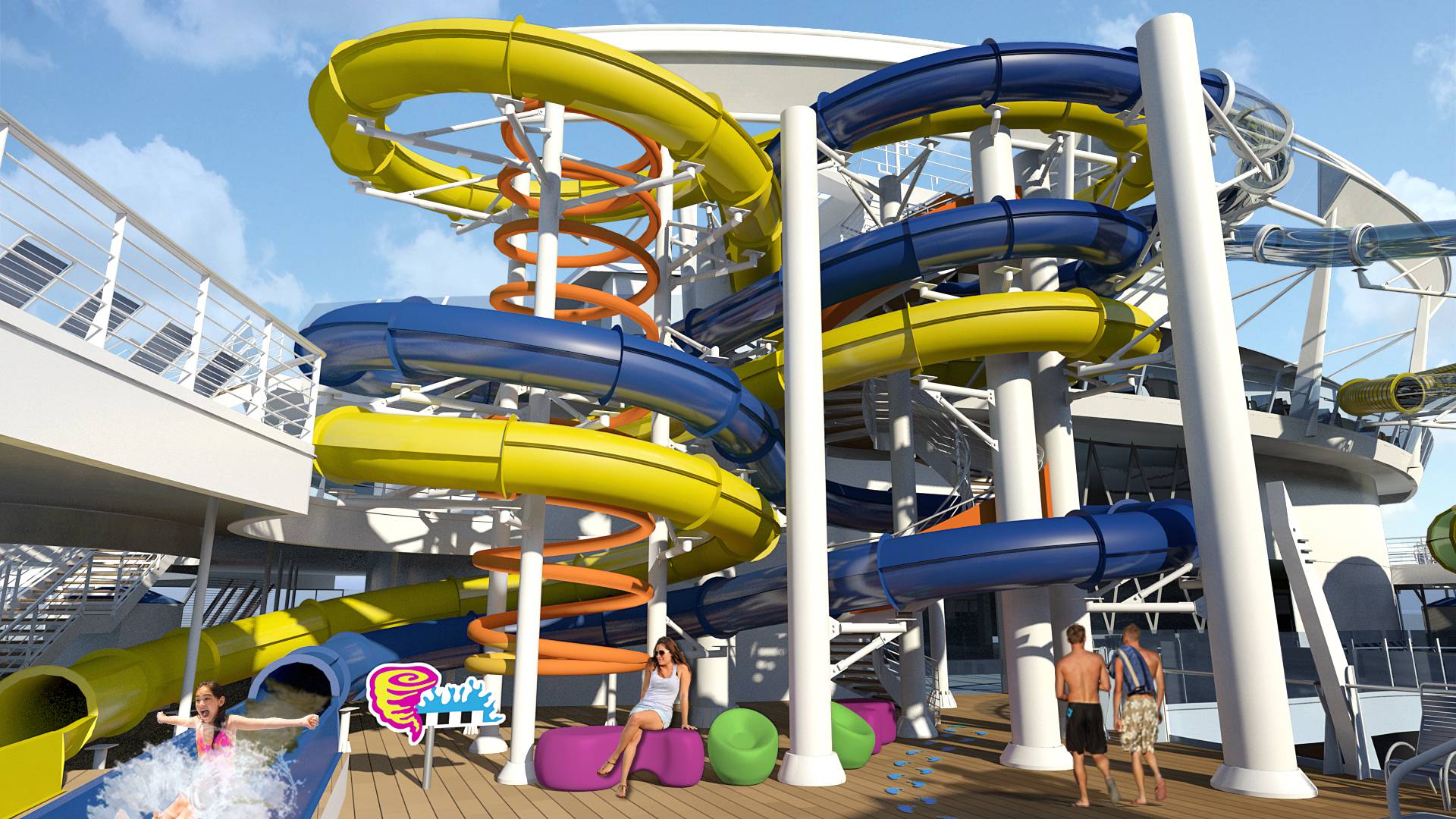 Ma l’avventura non finisce qui! Gli ospiti, infatti, potranno divertirsi nel primo parco acquatico interattivo per bambini a bordo di una nave da crociera, lo Splashaway Bay, oltre che provare l’incredibile discesa di 30 metri dell’Ultimate Abyss, lo scivolo più alto presente in mare, e le curve e gli avvitamenti mozzafiato del trio di scivoli d’acqua The Perfect Storm.
