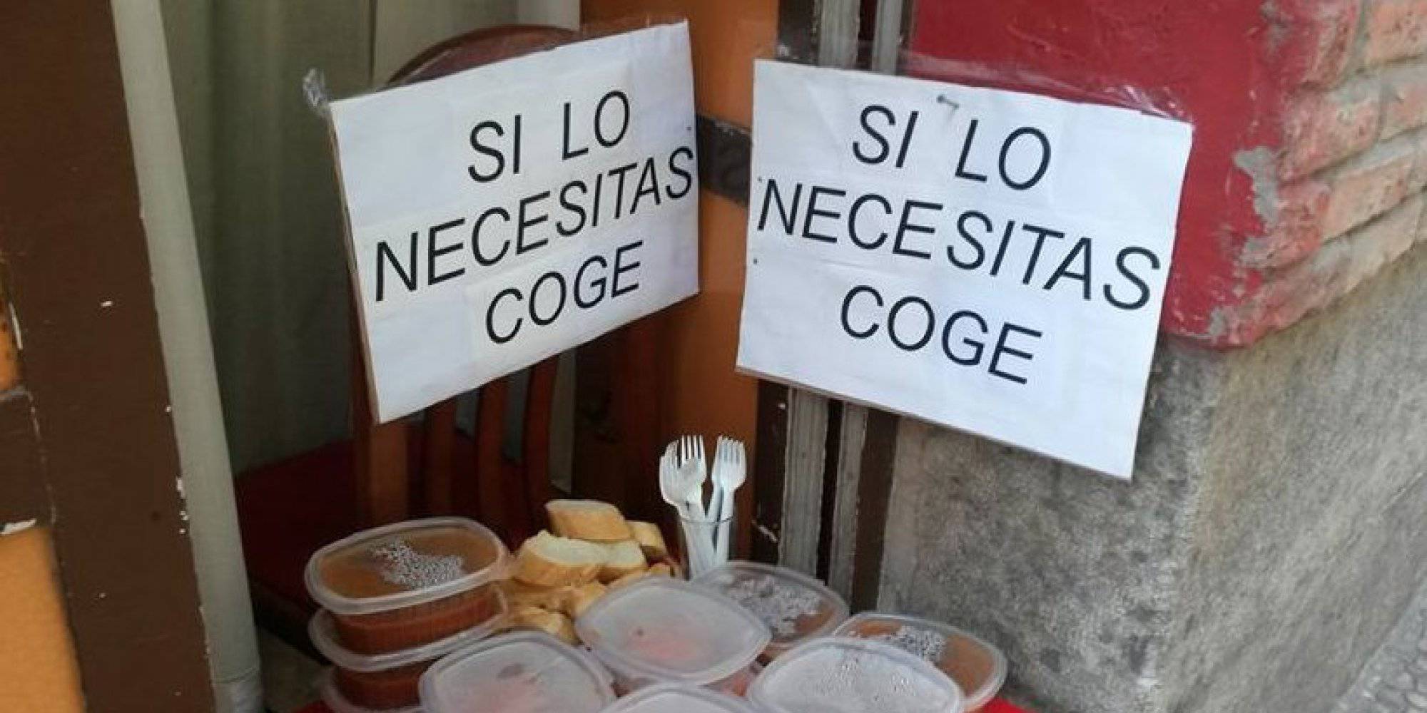 Così il ristorante spagnolo ha deciso di aiutare i bisognosi della zona, mettendo a disposizione subito fuori del locale, il cibo avanzato. Per non sprecarlo gettandolo via e per aiutare chi è meno fortunato.
