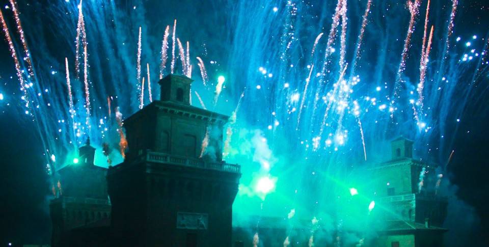 Il clou dei festeggiamenti a Ferrara è l’Incendio del Castello Estense, con uno spettacolo pirotecnico e musicale che attira visitatori da ogni dove.