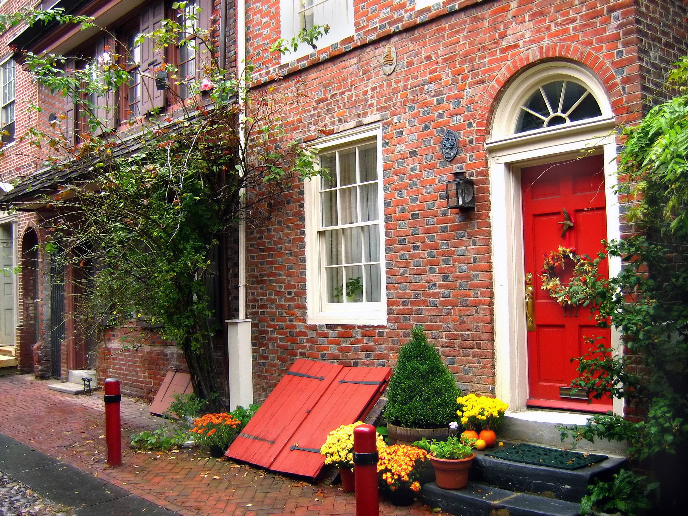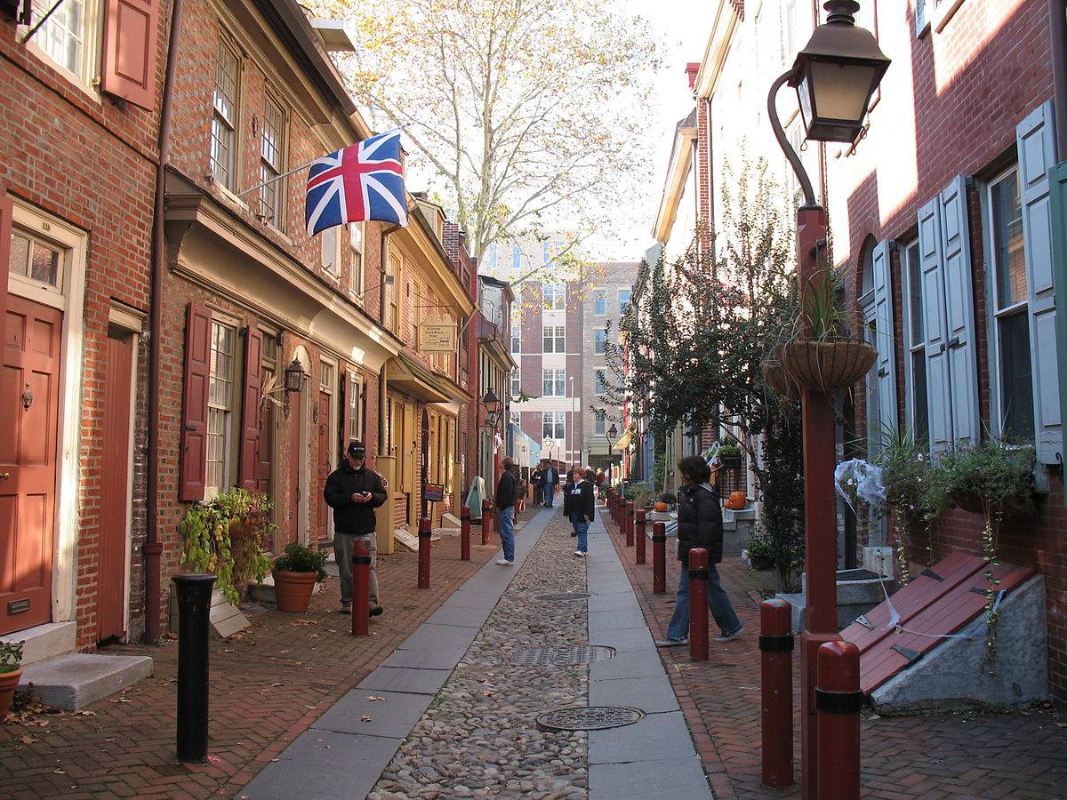 L’antica strada di Elfreth’s Alley, nella vecchia città di Philadelphia.