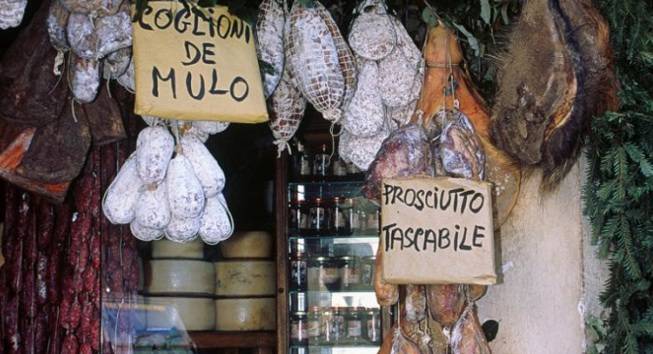 Norcia, Umbria: sono più famose Perugia e Assisi, ma anche qui non si scherza in qualità di cibo. In particolare la zona è famosa per i suoi salumi, aromatizzati con pepe o tartufo. Una delle specialità sono “i coglioni di mulo”che altro non sono che salumi a forma tondeggiante.