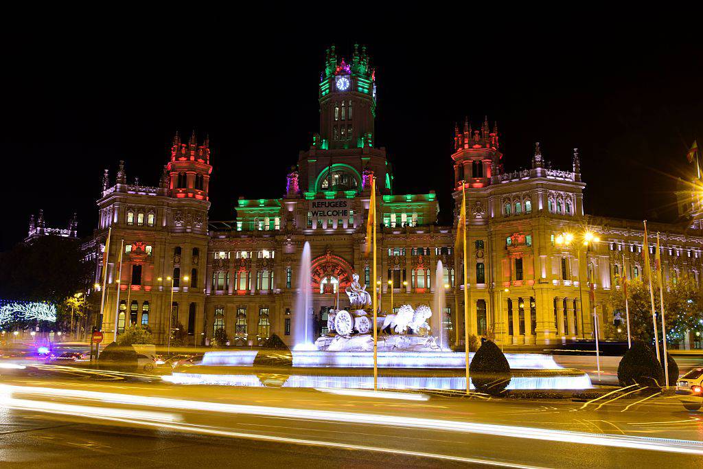 Il Municipio di Madrid illuminato dalle luci di Natale.