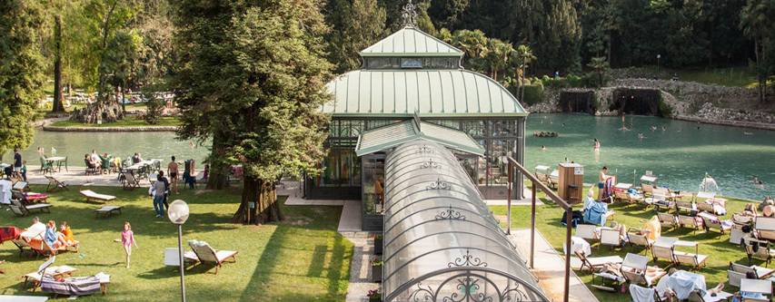 Colà, Lago di Garda: il parco della Villa dei Cedri è stato trasformato in una spa grazie alla sorgente termale scoperta per caso. Vicino al laghetto è stata installata una serra riscaldata in ferro e vetro riscaldata: grazie a un tunnel ci si può immergere nell’acqua senza sentire lo sbalzo di temperatura esterna.