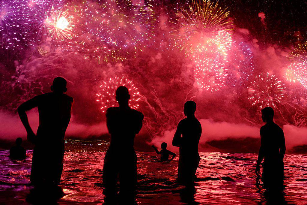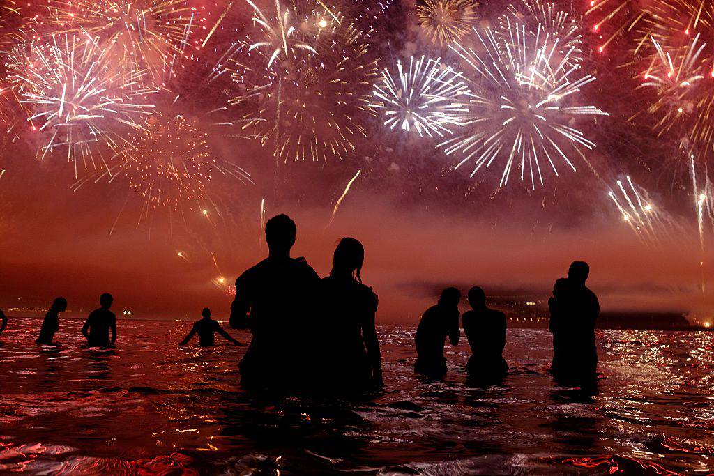 Lo spettacolo dei fuochi di artificio sulla spiaggia di Copacabana, così Rio De Janeiro dà il benvenuto al 2016, l’anno in cui nella città si terranno le Olimpiadi, per la prima volta in Brasile.