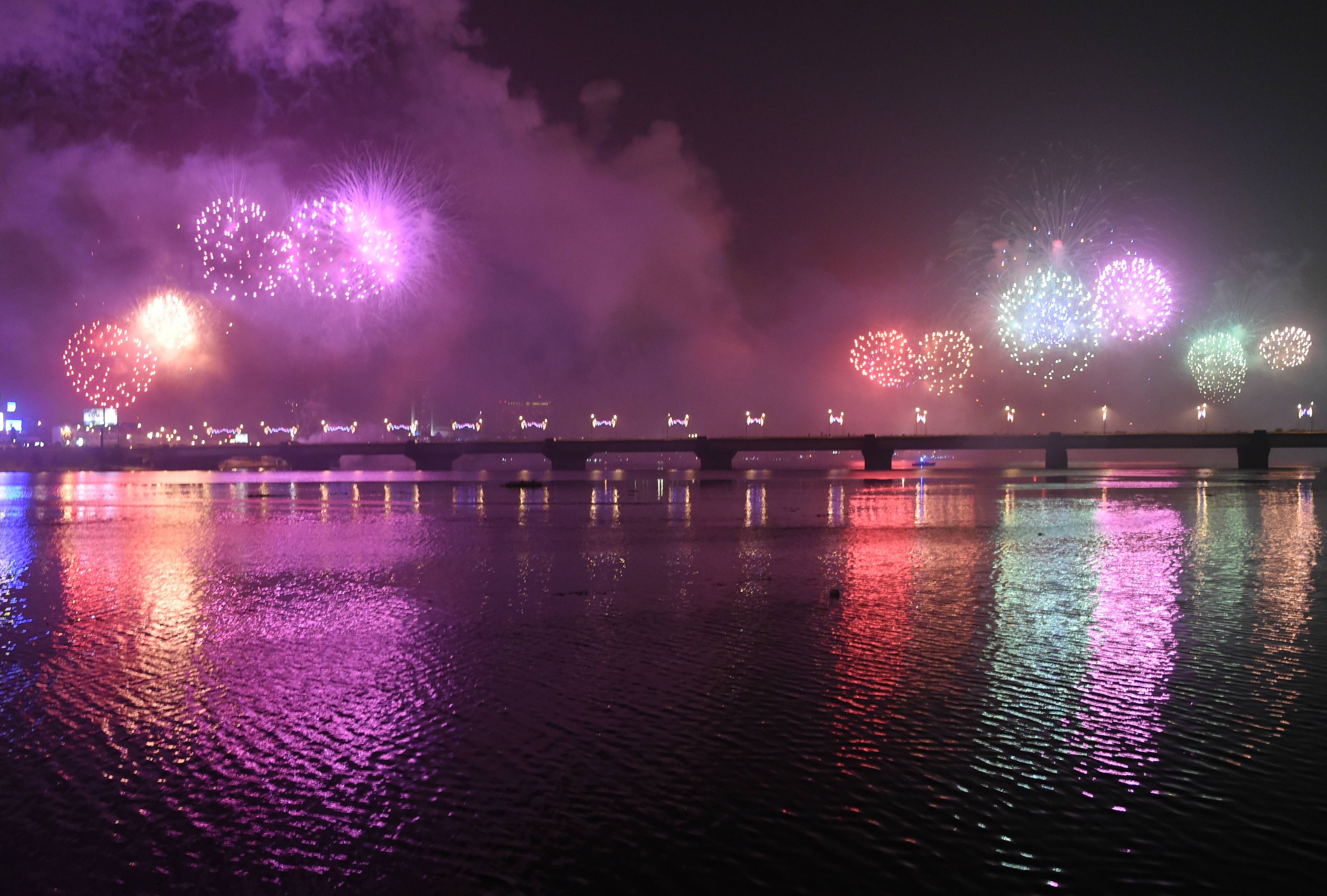 Celebrazioni per l’anno nuovo in Indonesia, a Surabaya, sull’isola di Giava.
