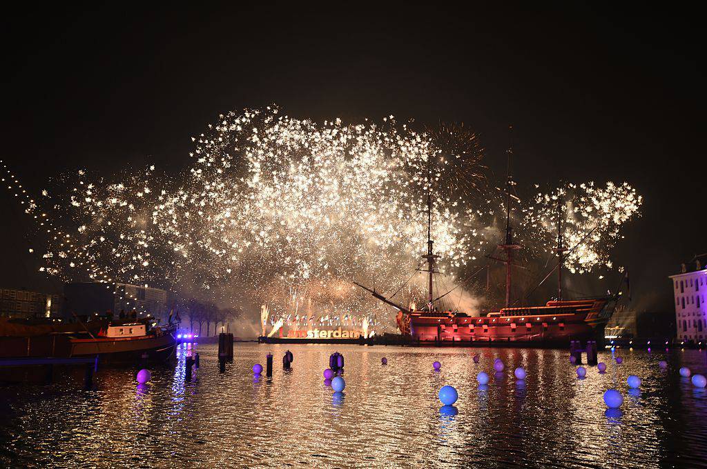 Fuochi di artificio al Museo della navigazione di Amsterdam. La magia delle luci sull’acqua.