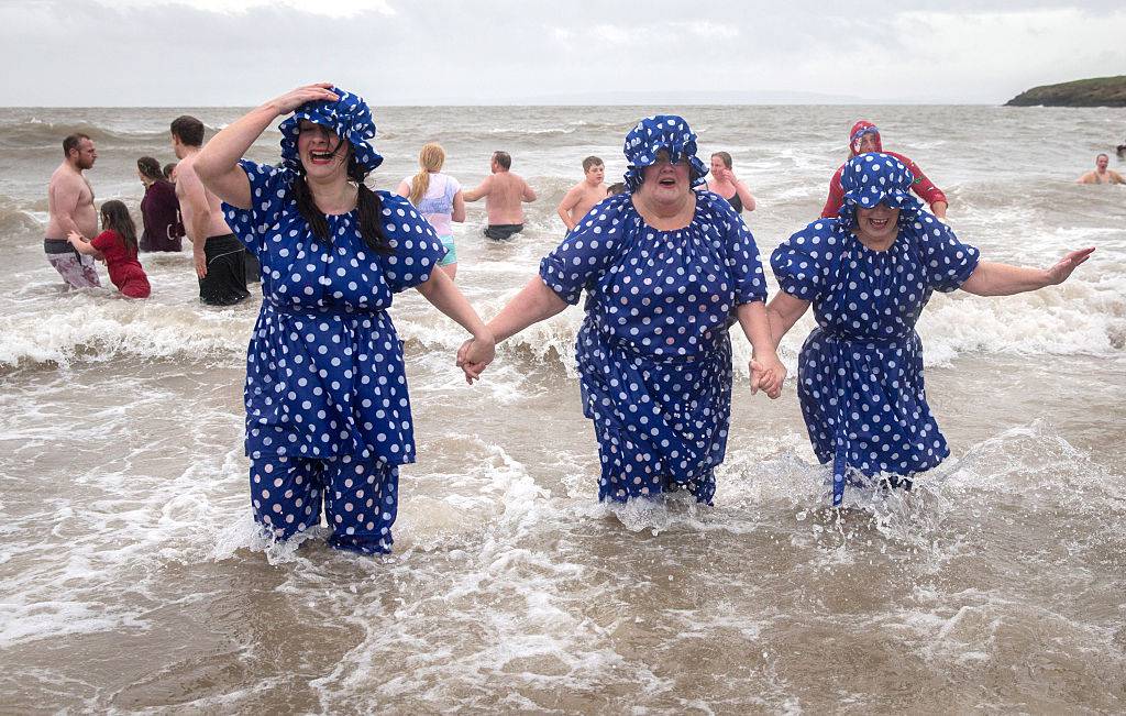Bagno di Capodanno in costume a Barry Island, in Galles.