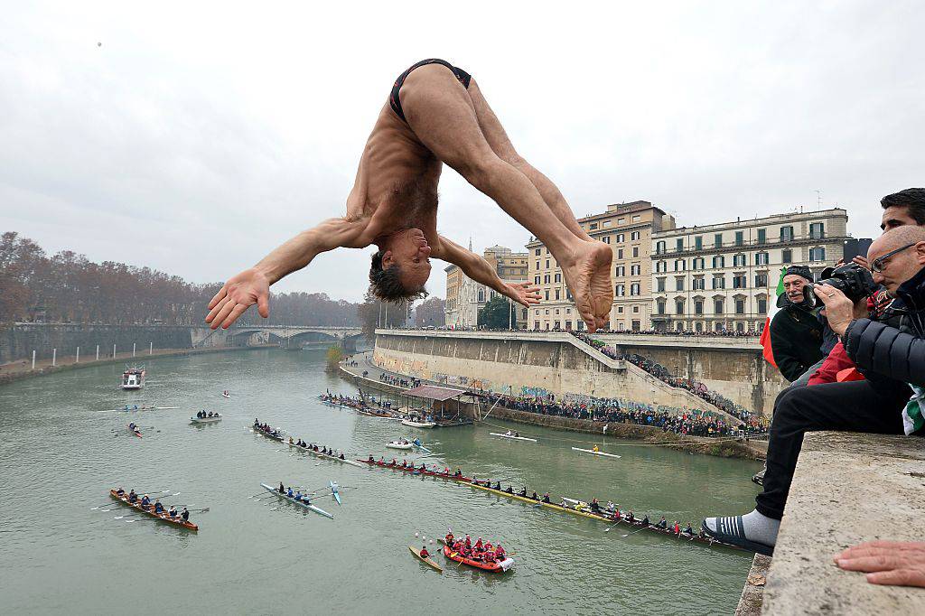 Un altro tuffo nel Tevere, questa volta meno atletico.