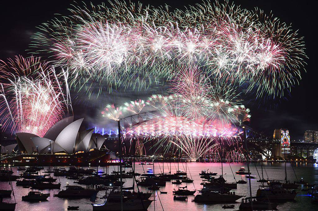 La baia di Sydney illuminata da un’incredibile spettacolo di fuochi di artificio.