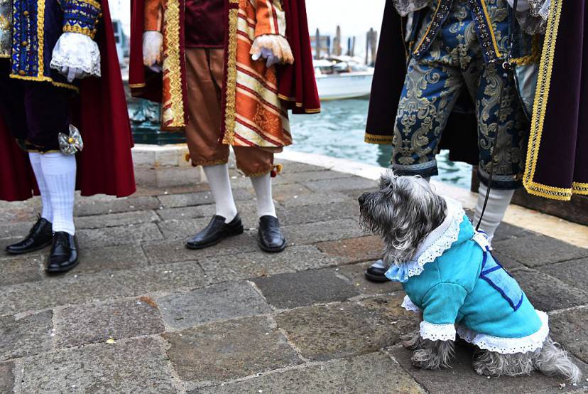 Anche i cani sono mascherati per il Carnevale.