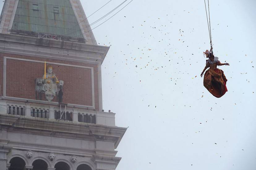 Il Volo dell’Angelo dal Campanile di Piazza San Marco. Ogni anno viene calata dalla torre la Maria, ovvero la ragazza più bella, vincitrice della precedente edizione del Carnevale. Quest’anno è toccato a Irene Rizzi.